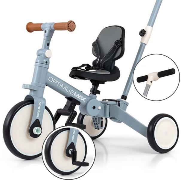 Gyerek háromkerekű bicikli 5az1-ben Milly Mally Optimus Max tolókarral denim