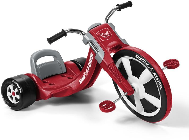Radio Flyer - Big Flyer Tricikli Utazzon egyet a Deluxe Big Flyerrel, egy díjnyertes, chopper stílusú triciklivel. A háromkerekű nagyméretű, 16"-os első kerék nagy tapadású anyagból készült, amely biztonságos utazást biztosít a megcsúszás veszélye nélkül. Az állítható ülést krómozott kormány egészíti ki. Jellemzők: Chopper stílusú tricikli kifinomult dizájnnal. Nagyméretű, 16"-os első kerék csúszásmentes anyagból készült, amely megakadályozza a csúszást. Széles hátsó kerekek. Krómozott kormány. 3 pozícióban állítható ülés, a stabilitás és a nagyobb szórakozás érdekében alacsonyan állítható a talajhoz képest. Robusztus, tartós anyagokból készült. Súly: 5,6 kg. A megengedett legnagyobb súly: 29 kg. Ajánlott életkor: 3-7 év.