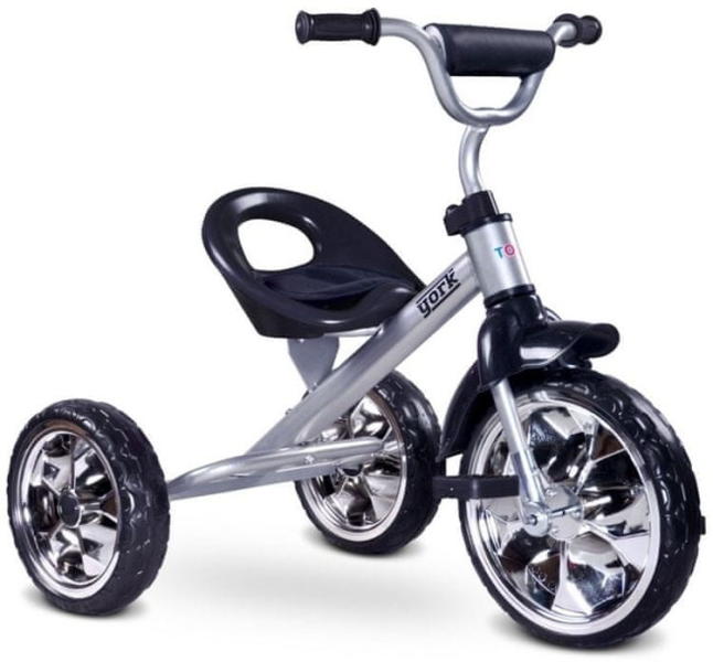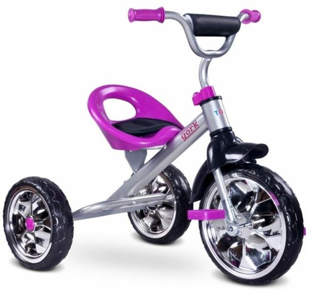 York tricikli a vidám színével hamar a nagyobb gyerekek kedvenc játékává válhat. A lábbal hajtós kivitelű tricikli fejleszti a gyermekek mozgáskoordinációját, és felkészíti a kétkerekű biciklizéshez. A masszív fém vázból készült tricikli 3-5 éves korú gyermekek számára ajánlott. A York tökéletes azon szülők számára, akik az első pedálos járgányt keresik gyermeküknek. Könnyű, kompakt ezáltal egyszerűen szállítható. A York legnagyobb előnye ugyanakkor a gyermekek számára nyújtott felejthetetlen szórakozás.